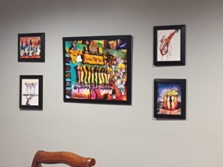 A close up of the wall but I love seeing the environment my Marilyn Sholin Fine Art is in because I can see a fun and cozy dining area. Of course if you are here in Asheville you can find my work in the Woolworth Walk and the Kress Emporium but if you are not here you can always go buy it here online at the website. I am hard at work with new paintings not just for the holiday season but also for the Woolworth where I will be the Featured Artist in January 2018! Excited!